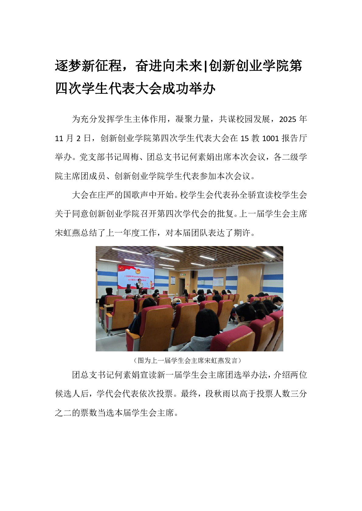 逐梦新征程,奋进向未来|创新创业学院第四次学生代表大会成功举办