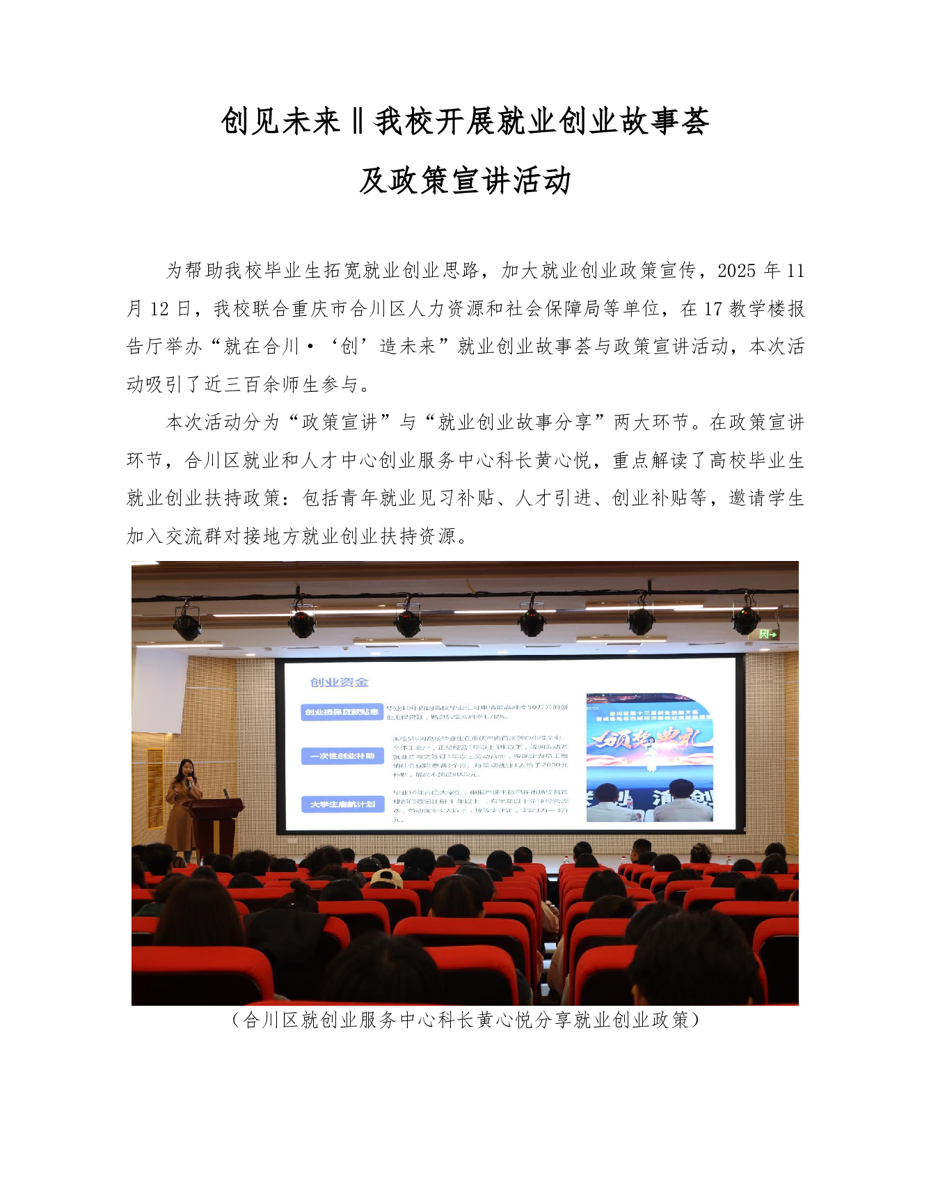 创见未来‖我校开展就业创业故事荟 及政策宣讲活动