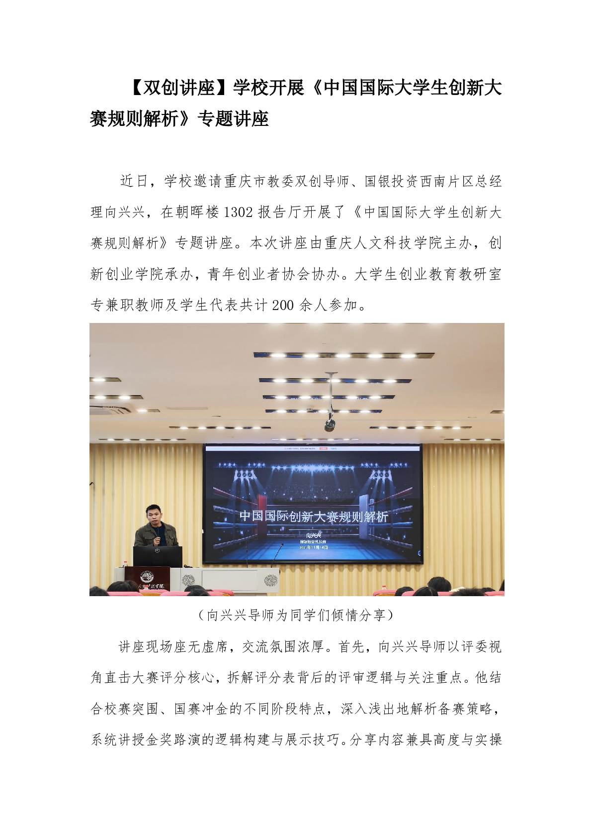【双创讲座】学校开展《中国国际大学生创新大 赛规则解析》专题讲座
