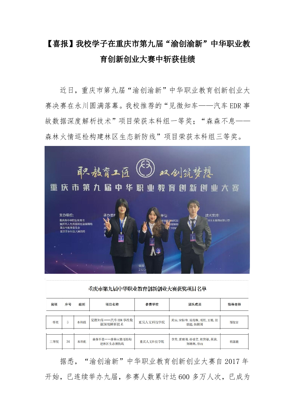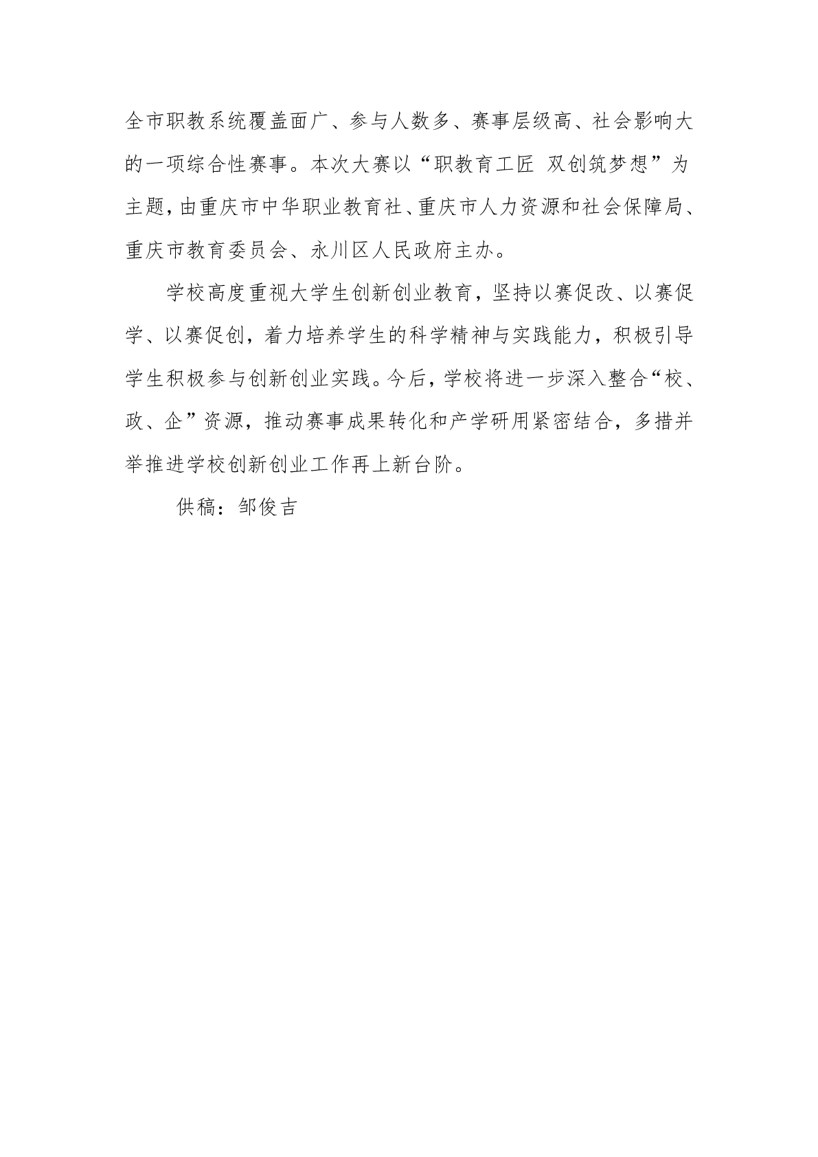 【喜报】我校学子在重庆市第九届“渝创渝新”中华职业教 育创新创业大赛中斩获佳绩