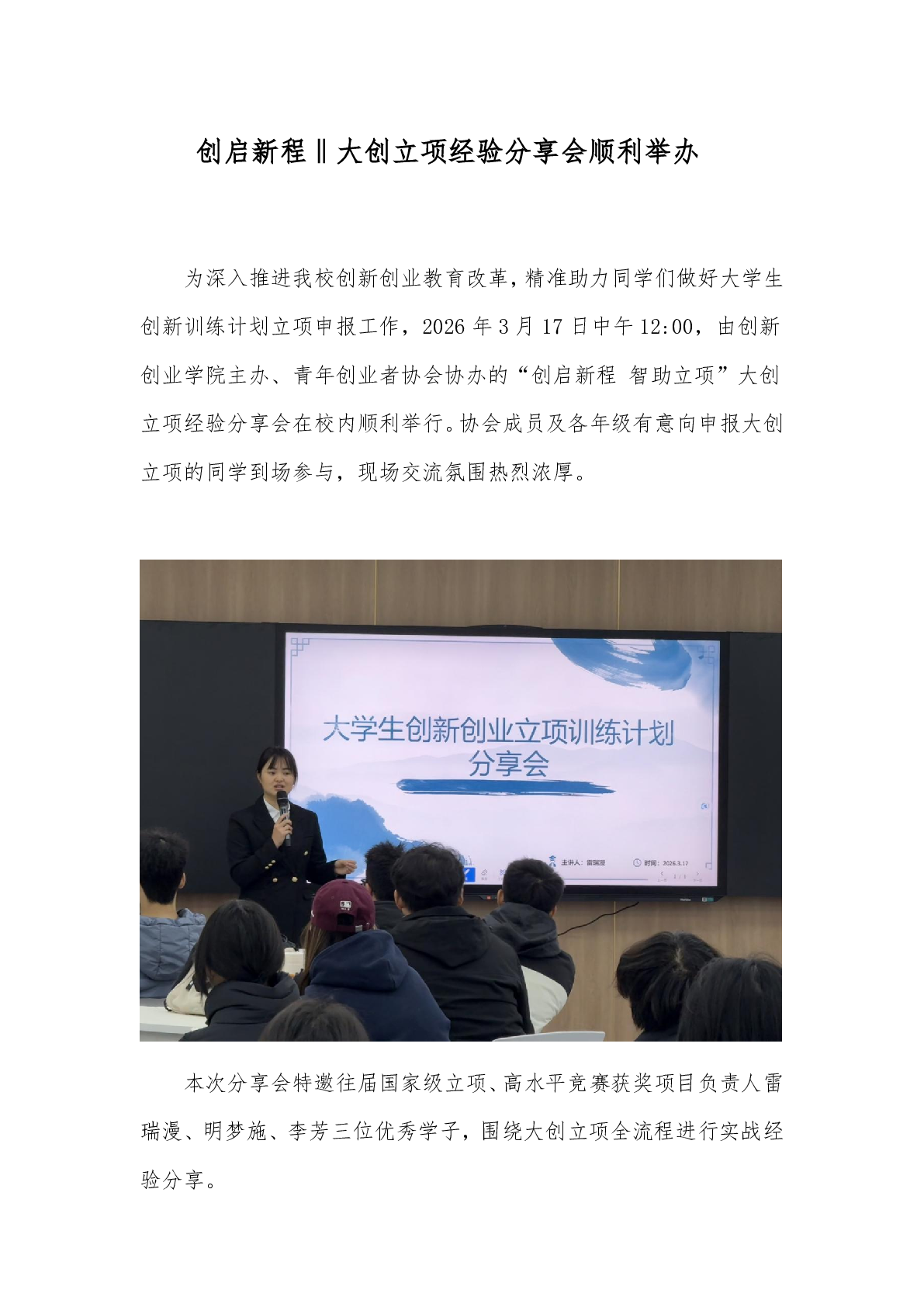 创启新程‖大创立项经验分享会顺利举办